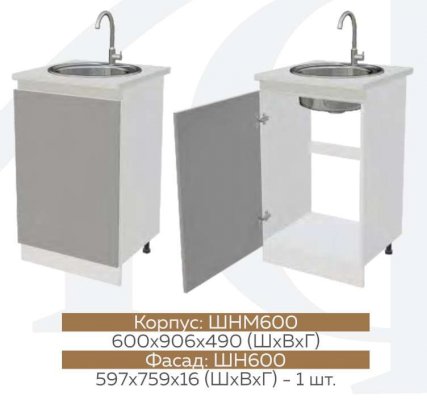 ШНМ800 Шкаф нижний под мойку Графит софт/Белый глянец холодный