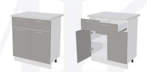 ШН2Я800 Шкаф нижний с 2-мя ящиками Белый глянец холодный/Графит софт