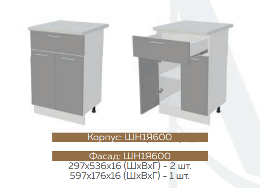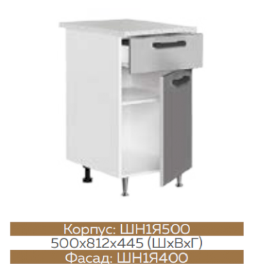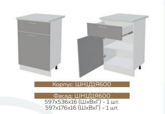 ШН1Д1Я600 Шкаф нижний с 1-м ящиком и 1-й дверью Белый глянец холодный/Графит софт