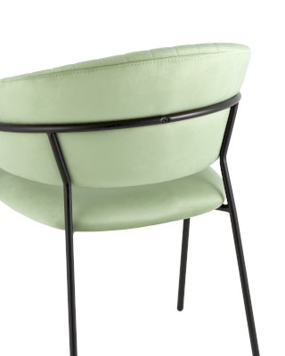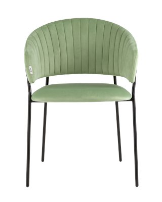 Стильный кухонный стул с оригинальной формой спинки, высокой поддержкой и подлокотниками. В качестве обивки используется мягкий велюр – приятный на ощупь износостойкий, гигроскопичный материал. Металлический каркас в черном цвете огибает спинку и выступает аккуратным акцентом модели. Широкое сиденье обеспечивает удобную посадку и уют.
