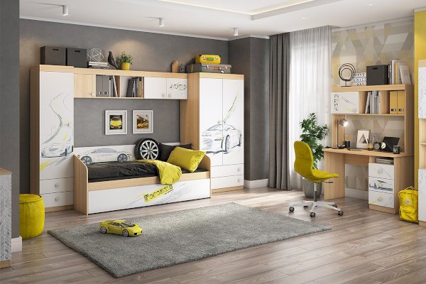 Детская «Форсаж» – это стильная, современная детская, которая понравится каждому ребенку. Рисунок устойчив к истиранию и ультрафиолету.