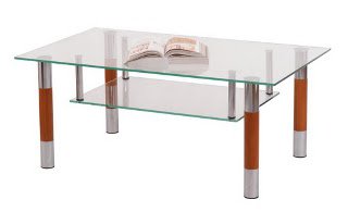 Журнальный стол - стеклянная столешница с полкой, ножки комбинированные с фетровыми подпятниками.
