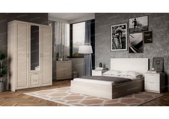 В гарнитур «Париж» влюбляются мечтательные натуры! Ведь от него исходит неповторимый, присущий исключительно столице Франции шарм. Светлая, излучающая теплоту и нежность отделка создает умиротворяющую, романтичную атмосферу в спальной комнате. Немного кокетства придают комплекту ромбовидный орнамент и изящный узор, украшающие дверцы шкафов и пеналов, фасады комодов и подголовники кроватей.