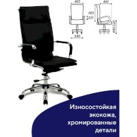 Современное кресло с хромированными деталями подойдет каждому. Комфортное и долговечное использование обеспечивают механизм глубокого качания с регулировкой под вес и возможностью фиксации в рабочем положении "Deep Tilt" и высококачественная экокожа.