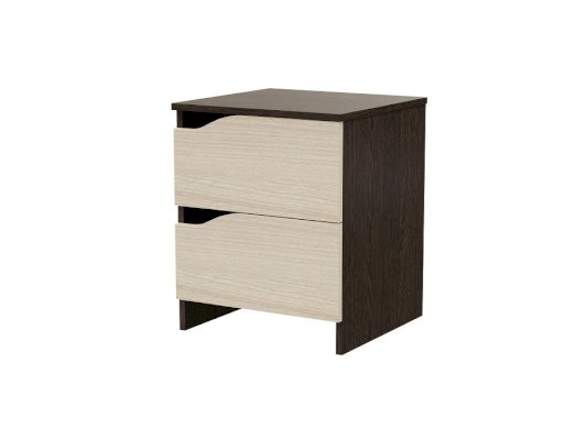 Двухцветная прикроватная тумба в современном стиле. Модель с двумя вместительными выдвижными ящиками, в конструкции которых ручки заменены специальными нишами для более комфортного пользования тумбой. Высокие ножки обеспечивают быстрый доступ к пространству под тумбой, что значительно облегчает процесс уборки. Материалы. Тумба выполнена из высококачественной ЛДСП, отличающейся повышенной прочностью и износостойкостью. Обратите внимание на последовательность цветов при выборе исполнения: первый цвет - цвет корпуса мебели, второй цвет - цвет фасадов.