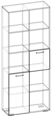 Применение задней стенки из ЛДСП (в ячейках с фасадами) позволяет использовать данный стеллаж для зонирования пространства (чтобы предотвратить опрокидывание, необходимо обеспечить крепление стеллажа к стене).
