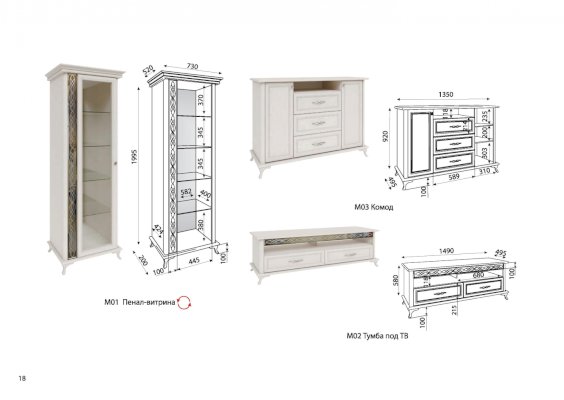 Комод с ящиками М03 схема