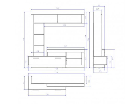 ТВ-тумба с большим выдвижным ящиком и открытыми нишами под мультимедиа превратит гостиную в настоящий домашний кинотеатр. Комбинированный стеллаж с открытой полкой подойдет для книг и предметов декора, способных оживить любой интерьер.