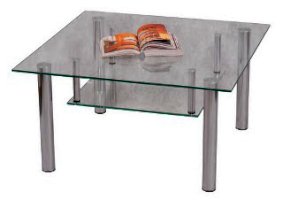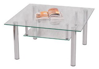 Журнальный стол - стеклянная квадратная столешница с полкой , ножки металлические с фетровыми подпятниками.