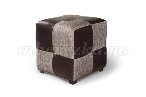 Простой по форме пуф-кубик , выполнен из черных и белых квадратов в шахматном порядке. Изготовлен из прочного ДСП, в качестве обивки использован пенополиуретан (ППУ). По желанию заказчика может быть выполнен из различных по фактуре мебельных тканей, в различных расцветках.