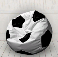 Бескаркасное мягкое кресло, пуфик в форме футбольного мяча. Внешний чехол из ткани Оксфорд 210D с влагозащитной пропиткой. За такой тканью легко ухаживать. Достаточно протереть, чтобы почистить. Можно снимать и стирать внешний чехол пуфика, быстро высыхает. Наполнение - сенсорные шарики. Диаметр кресла мяча можно выбрать.