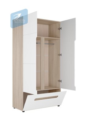 • Шкаф оснащен металлической штангой и ящиком с откидной створкой на газлифтах.