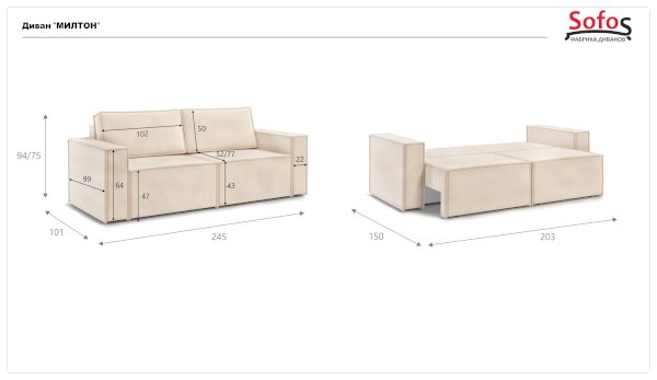 Глубина сиденья без подушек: 760 мм
