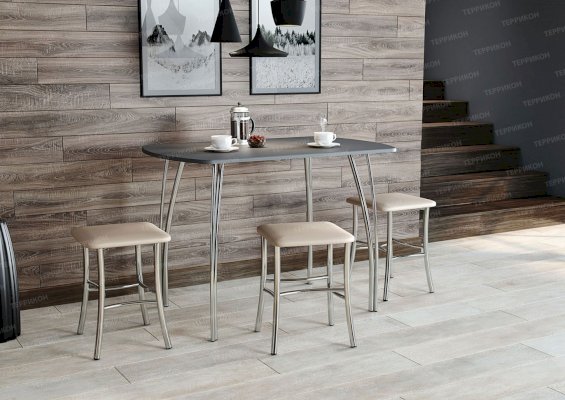 Столешница выполнена в цвете Софт графит, сидушка - Экокожа бежевая