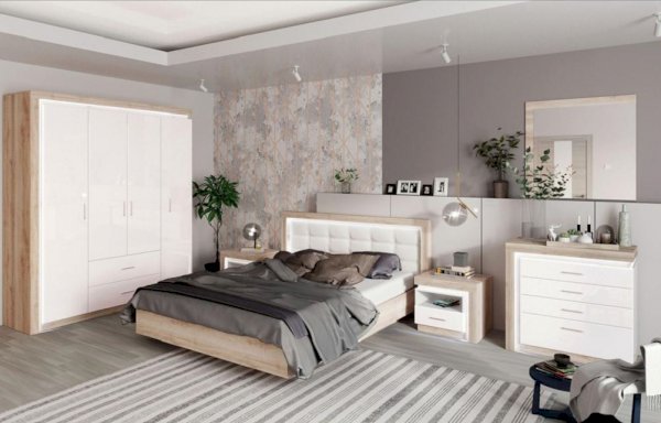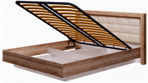 Кровать (спальное место 1600х2000 мм) изготавливается с ортопедическим основанием и подъемным механизмом. Внутри расположены ящики для белья.