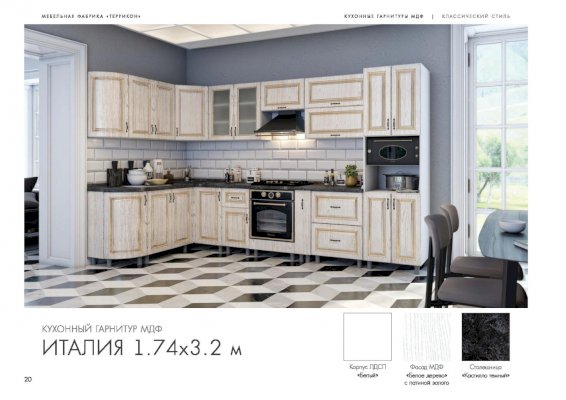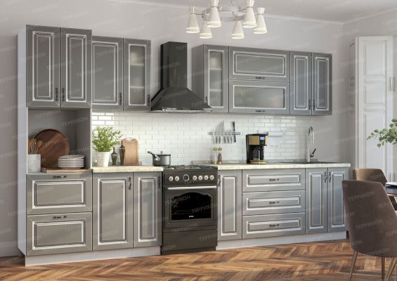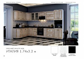 Кухонный гарнитур «Италия» воплотил в себе роскошь и эстетизм этой прекрасной средиземноморской страны. На суд покупателей представлены комплекты с отделкой под графит, платину, беленый дуб, а также великолепные модели фисташкового цвета. Шикарный вид придают дизайнерская фурнитура, дверцы шкафчиков из рифленого стекла, золоченные прямоугольники на фасадах.