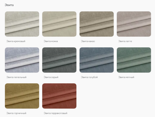 | Цвет | БЕЖЕВЫЙ / БЕЛЫЙ / ГОЛУБОЙ / ЗЕЛЕНЫЙ / КОРИЧНЕВЫЙ / РОЗОВЫЙ / САЛАТОВЫЙ / СЕРЫЙ / СИНИЙ / СИРЕНЕВЫЙ / ЧЕРНЫЙ / КОФЕ |