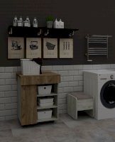 Тумба может комплектоваться опцией, тогда полки справа будут закрыты створкой, либо идти с открытыми полками.