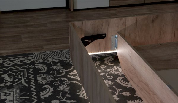 «Парящая в воздухе» кровать Джулия – это новинка современного рынка, выполнена в простых и лаконичных формах. Комбинированное изголовье из ЛДСП с мягкой накладкой - удобная, уютная и красивая деталь дизайна, позволит комфортно проводить время в кровати. Рамка из МДФ по краям со светодиодной подсветкой служит дополнительным освещением в ночное время и создает романтическое настроение. Надежный каркас кровати с трапециевидными ножками, расположены ближе к центру конструкции и практически не видны создают «эффект парения», светодиодная подсветка по периметру кровати усиливает эффект невесомости. Кровать с ортопедическим основанием на металлическом стальном каркасе и газовых лифтах.
