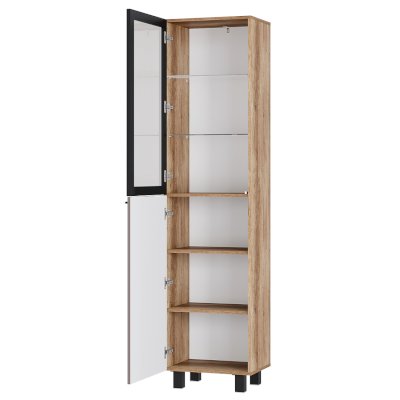 Пенал "Олива" - практичное и красивое решение для организации хранения. Стеклостворка в чёрной рамке+чёрная фотопечать 2 см на отталкивателе. Верхняя и нижняя створки одинаковые по размерам. Створки можно установить на противоположную сторону. Пенал крепится к стене при помощи овербаланса, который есть в комплекте. Крепежная фурнитура к стене приобретается отдельно и зависит от типа ваших стен. В гостиной "Олива" квадратные черные опоры - 50х50х100 мм.