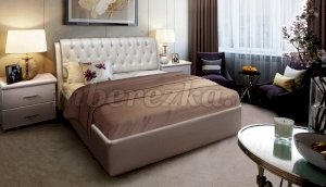 Плавность линий и изысканный дизайн главное отличие кровати "Клеопатра 2". Кровать имеет высокое мягкое изголовье, удобно облокотившись на которое можно перед сном почитать книгу или посмотреть телевизор. Декор из стяжек с применением пуговиц только подчеркнет благородность модели. Современный подъемный механизм кровати позволит без усилий использовать бельевой ящик с помощью специальных газовых лифтов.