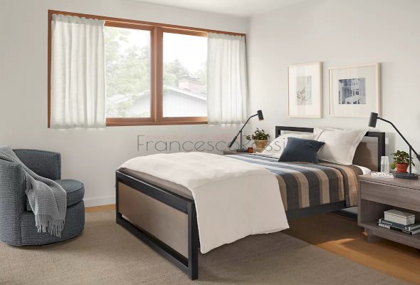 Благодаря отсутствию сплошного полотна изголовья и основания и его замены на горизонтальные перекладины модель выглядит изящно и совершенно не громоздко, благодаря чему может гармонично дополнить любой интерьер в современной стилистике.