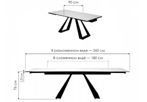 | Длина разложенного столика, мм | 2600 |