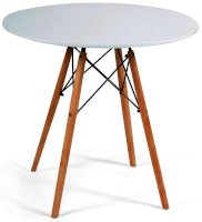 Стильный обеденный стол CINDY NEXT из коллекции Modern создан в стиле работ американских дизайнеров супругов Имз. В своих работах они стремились соединить два основных принципа: простоту и функциональность. Эти принципы удачно сочетает в себе стол CINDY NEXT. Он лаконичен, сдержан, легок и естественен. Визуальная легкость позволяет ему стать идеальным решением даже для небольшого помещения. Круглая форма стола, за которым могут комфортно разместиться четыре человека, располагает к приятному и непринужденному общению. Оригинальные ножки из массива бука и классическое металлическое крепление выгодно выделяют его среди привычной мебели. Надежная столешница из мдф, покрашенная в белый цвет, не требует сложного ухода, выдержит воздействие жидкостей и тепла. Эта элегантная и комфортная модель станет любимым местом отдыха в вашем доме. Стол отлично подойдёт для гостиной, для кухни, для дачи, для ресторана или для кафе. Стол очень прост в сборке, инструкция по сборке прилагается.
